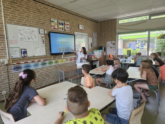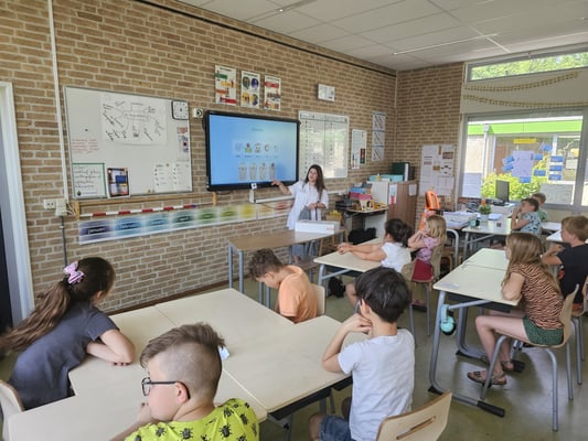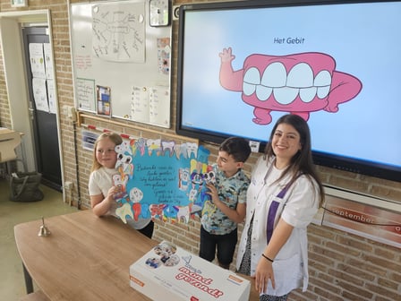 Op dinsdag 21 mei mochten wij gastles geven aan groep 4 en 5. Otavia Sultan (tandarts) en Mari Ailo (manager) werden hartelijk verwelkomd door de groep. Ze hebben goed geluisterd naar de informatie en hebben veel interessante vragen gesteld (o.a.: Wat is een kaastand? Waarom doen jullie autotransplantaties en anderen niet? Waarom zitten jullie in Enschede en niet in Oldenzaal? Hoe snel krijg je grote mensen kiezen?)